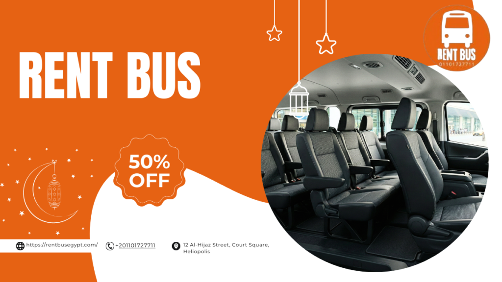 لذلك، ننصحك بحجز رحلتك مسبقاً للاستفادة من خصومات رمضان التي تصل إلى 50%. وفي الختام، تظل شركة رينت باص مصر هي شريكك الموثوق في كل مشوار. بالتالي، لا تتردد في التواصل معنا الآن عبر الرقم 01101727711.